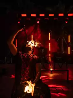 Fiery fire collides with cold light. Spots of light kiss the hem of satin.