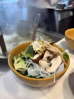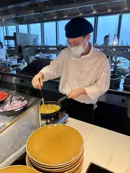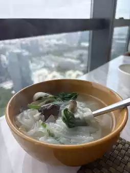 Breakfast runs from 6:30 – 10:30, and there are quite a few choices: Chinese with congee rice, dim sum, stir-fried vegetables, Western with cold salads, breads, desserts, fruits, and a ready-to-cook noodle stall, namely pulled 腸粉, and my favorite meat dumplings. Whether you like a light or rich breakfast, you can find your favorite.