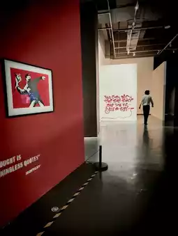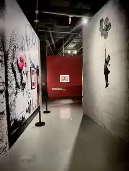 The exhibition is divided into three sections: "The Hidden Poet," "The Invisible Presence," and "The Babel of Landscapes," showcasing his works that have appeared on streets, walls, and bridges in various cities around the world. The spacious venue provides plenty of room for visitors to take photos and connect with this graffiti artist.