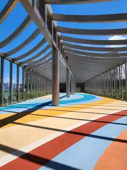 The mall is divided into the South and North Wings, each with a distinct style. The North Wing features a natural wood tone and green plants, with a glass canopy that lets in natural light. When viewed from below, the layered design resembles scattered mountain rocks—truly stunning. The South Wing exudes a trendy vibe, showcasing vibrant yellow tones that radiate energy and style. The rooftop's "Pearl of the Sea" serves as a landmark!