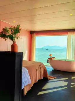🏠 The pink walls of "Man Keke" are super photogenic, the pool merges with the sea, lying here, listening to the sound of waves, watching the sails, even time slows down to the rhythm of the sea breeze.