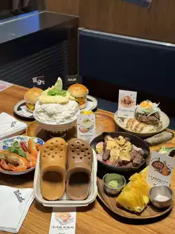 Melting Foie Gras Thick-Cut Hamburger Rice: Poke the aseptic egg 🥚, letting the egg liquid overflow the entire bowl of rice 🍚. The burger patty is thick and the foie gras is creamy.