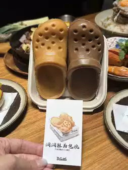 Hole-shaped Shoe Bread: Available in two flavors: matcha 🍵, red bean, and chocolate 🍫. It has a texture similar to an egg waffle 🥚, crispy on the outside and soft on the inside.