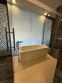 The guest rooms are equally impressive. The beds are wide and extremely comfortable, with mattresses and pillows offering just the right level of firmness. I had an excellent night's sleep. The bathroom area is also very spacious, featuring a thoughtful double-sink design that makes it convenient for multiple people to use simultaneously. The separate bathtub and shower area are well-planned, with glass partitions ensuring a dry and wet separation. The marble finishes add an extra layer of refinement and luxury.