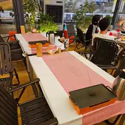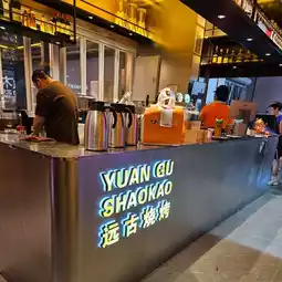 Yuan Gu BBQ is a spacious barbecue restaurant in Futian District with both outdoor and indoor seating.