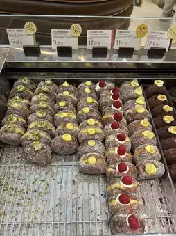 We tried three donuts, including the popular "Italian Pistachio Yogurt" donut, the "French Crispy Chocolate" donut, and the "Toasted Almond Matcha Chocolate" donut. Let's start with the "Italian Pistachio Yogurt" donut. The donut itself was fluffy and soft, with a rich yet non-cloying pistachio sauce, complemented by the light tartness of the yogurt. The layers of flavor were incredibly satisfying, and the unique pistachio flavor spread throughout each bite. The other two donuts were also of excellent quality, with the chocolate just the right amount of sweetness, making them a pleasant, non-cloying treat.