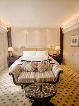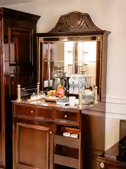 The hotel's spacious and bright dining room features comfortable vintage sofas and lacquered furniture with a vintage feel. The guest rooms are meticulously maintained, with even the small mirror on the dressing table being immaculately clean, demonstrating thoughtful attention to detail.