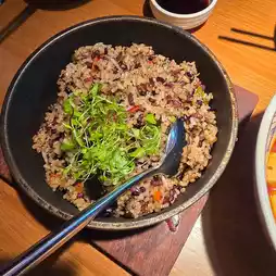The black truffle fried rice was fragrant, and the unique truffle flavor added a layer of depth to the dish. The organic dandan noodles were also delicious, with chewy noodles and a rich sauce that made them irresistible.