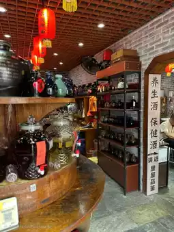 ฉันค้นพบร้านนี้โดยบังเอิญตอนไปเที่ยวเมืองโบราณ Gankeng เมื่อคุณเดินเข้ามาเรื่อยๆ คุณจะพบร้านไวน์เพื่อสุขภาพตั้งอยู่ทางขวามือ ร้านตกแต่งด้วยไหหมักสไตล์จีนมากมาย และมีไวน์ที่หมักจากสมุนไพรต่างๆ โดยจะมีการ % alcohol บอกในป้าย ตั้งแต่น้อยๆ ไปจนถึงมากๆ