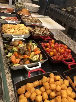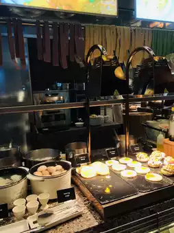It's truly a luxurious culinary journey! The dining table is overflowing with delicious dishes: fragrant Chinese congee, rice, noodles, and rice, fresh and colorful Western salads 🥗and fruits 🍎, and exquisite and tempting Japanese sushi. The dim sum is especially appreciated, made to order. The shrimp dumplings and shumai are thinly wrapped and filled with delicious fillings, and served piping hot! The restaurant is incredibly spacious, with lush greenery outside the floor-to-ceiling windows. Every detail is elegant and captivating—from the exquisite tableware to the floral arrangements, it feels like even dining has become an artistic experience. A morning like this is so perfect you won't want to leave! 🫶🫶🫶