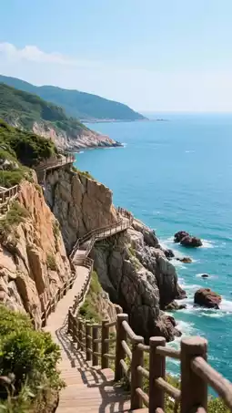 3. Luzui cliff boardwalk curve, shooting the “sky road leading to the sea”