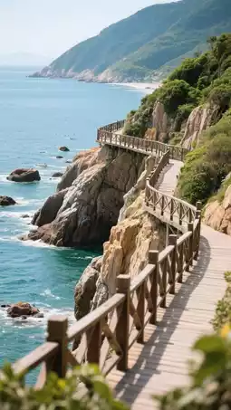 2. **Cycle to Luzui Cliff Boardwalk entrance** - About 20 minutes’ walk uphill, shaded by trees with fresh air - Arrive at [Luzui Mountain Villa] — filming location of "The Mermaid" - Check in at the popular “Mermaid Cave”: a natural sea cave formed by waves, perfect for silhouette photos >✅ Tip: Wear non-slip shoes! Rocks are slippery; bring sunhat and sunglasses! ---