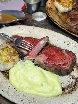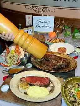 The restaurant is offering a special deal for Hong Kong residents. The original price of NT$1,270 for two people is now NT$990 with a group buy. Present your Home Return Permit to receive a NT$100 discount, bringing the meal down to NT$890. Weekdays also offer a single lunch set for NT$118. Enjoy delicious steaks in a high-quality restaurant setting at an excellent value.