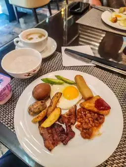 As for dining and amenities, the breakfast was plentiful, with both Chinese and Western options, and the food was authentic. The gym room was well-equipped, and the floor-to-ceiling windows offered a stunning view of the Shenzhen cityscape at night.