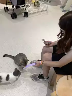 Before very worried, the cats in the cat cafe will not be malnourished, the owner will not care, thinking someone to feed, will not provide additional food to them 🙂↕️ Seen on site, the store will provide their main food and water, customers can purchase snacks to feed 😆