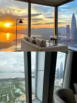 In this fast-paced city of Shenzhen, staying once in a high-altitude hotel can really change your mood. Watching the endless traffic below and the distant sea, you suddenly understand what it means to "watch the world from the clouds"~