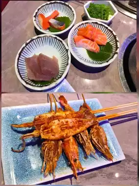 The buffet area is recommended, garlic oysters🦪, delicious skewers🍢. The octopus, cheese baked shrimp, grilled sauce eel and grilled lamb chops were also good. Don't miss grilled durian if you like durian. The Japanese sashimi and sushi area is also very attractive, the arrangement is very thoughtful, appetite increases 😋👍