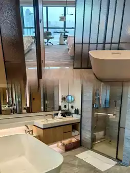The 46th-floor lobby blew me away as soon as I walked in! The Mondrian-style design is so stylish, and the entire floor-to-ceiling window faces the Nanshan CBD. When the lights come on at dusk, it’s perfect for shooting cyberpunk-style photos. I chose a high-floor scenic room, starting at 38㎡, which is super spacious. The panoramic floor-to-ceiling windows offer a direct view of the "Shennan Yicai" night scene. Who else understands the joy of soaking in the tub while watching the sunset above the clouds?
