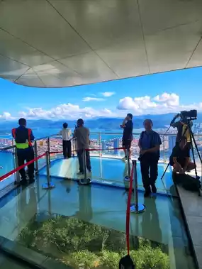 📍A popular new landmark in Yantian District! Cloud Sea Plaza is perched at an altitude of 380 meters, featuring floor-to-ceiling glass windows that offer breathtaking views. On clear days, you can enjoy the blue skies, white clouds, and endless mountain and sea scenery, including a full view of Sanshoutang. If you encounter misty weather, it truly feels like "walking on clouds and entering a fairyland"—absolutely stunning!