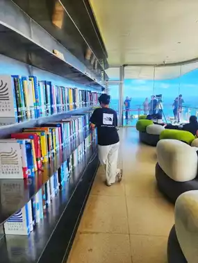 🎡 The design is ultra-modern, with a pure white exterior and a three-story structure: the first floor mainly includes restrooms and an outdoor viewing platform, the second floor offers expansive views, and the third floor features a Hillside Café and a free library. There’s also a charming large-scale floral arrangement, making it impossible to stop taking photos. Many visitors have commented that it resembles a cruise ship deck or a UFO in the clouds!