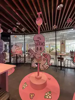 This time, I'm sharing a unique Luckin Coffee branch. Most Luckin Coffees you see are takeout shops or have limited seating. This one, located in Shenzhen's Happy Coast, stands out. The pink decor at the entrance captivates you, and once inside, you'll discover it's a collaboration with Easter Bunny from South Korea. Inside, there are plenty of pink photo booths where you can take photos with the adorable Easter Bunny! It's truly a place full of girly charm!