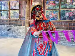 Besides the architecture and streetscapes, Gankeng Ancient Town's must-see attraction is the Sichuan Opera Face-Changing performance. Actors, clad in magnificent costumes, transform their delicate facial expressions in a flash to the rhythm of drums and body movements, elevating the atmosphere to a climax. Watching this traditional Chinese quintessence up close, you'll be captivated by its allure.