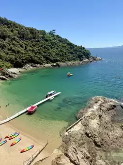 The hotel has a private beach with stunning views, but if you want to play on the beach, make sure to bring beach shoes because the sand is quite coarse. This was the only downside of our stay 🥲