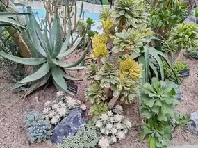 The sand and gravel path is super cleverly designed to take you through the garden, the sunlight shining through the glass, hitting the succulent velvet, every inch seems to sparkle, as if you can feel them breathing. This is not only a treasure trove of plant collections, but also focuses on minimalist desert aesthetics. It is definitely a healing photo spot away from the hustle and bustle of the city, making people marvel at the tenacity and poetry of natural creations.