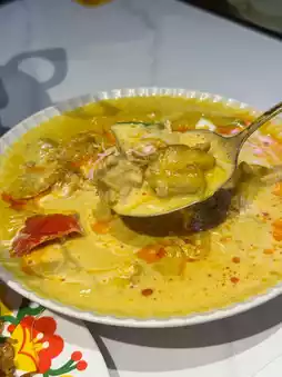 Yellow curry coconut is rich and sweet, boneless chicken is very tender, perfect with white rice😋