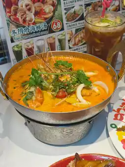 Sour and spicy just right, orange-red and translucent soup, with coconut milk sweetness and lime fresh fragrance, seafood with shrimp, mussels and squid rings, fresh and bouncy, every mouthful of soup fresh and rich.