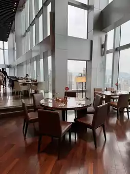 I really appreciated that the restaurant is on the top floor of the hotel, offering an incredible view, high ceilings, and controlled crowd flow.