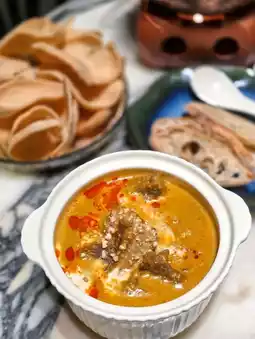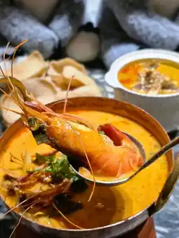 The soup is made from a variety of spices, with a rich coconut flavor - added with shrimp and mussels, the soup is particularly delicious, the sour and spicy just right!