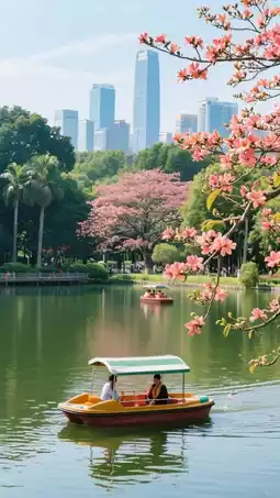 Enter the park at 7 a.m., with morning light shimmering on the artificial lake, light mist floating, and egrets skimming the water. Jog or cycle along the lakeside trail, with swaying coconut trees and blooming bougainvillea on both sides, a gentle breeze brushing your face—instantly escaping the urban hustle.