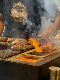 The popular burger burger from Tokyo can finally be eaten in Shenzhen, with Australian M9 Wagyu freshly minced, charcoal freshly grilled Wagyu burger 😋 The meat is rich and tender, every bite is overflowing with happiness.