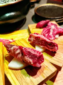 You don't have to move your hands at all. The master helps you grill it just right. The meat is tender and juicy. You don't want to stop eating