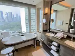 The hotel's service is genuinely excellent. In terms of rooms, the space is spacious, clean and tidy, and the bathroom has a landscape bathtub - it feels super nice to see the night view of Shenzhen while soaking. The mattress is super comfortable, some floors are newly renovated, the design is more modern, and the views are excellent.