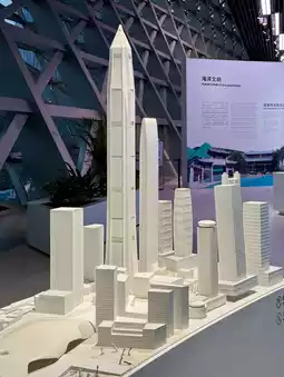 If you're in Shenzhen and love art or are interested in urban design, I highly recommend stopping by the Shenzhen Museum of Contemporary Art & Planning Exhibition (MOCAPE). This museum combines a contemporary art museum and an urban planning center all in one. The building is stunning, with its futuristic design. Stepping inside feels like you've stepped into the future. It spans five floors.