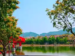 The park also features a stunning lakeside view, with yellow and red flowers blooming by the water. Modern buildings in the distance create a perfect backdrop, making every snap a cinematic masterpiece. Remember to bring a bubble machine or balloons as props to add more life to your photos~