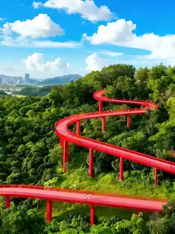 🔥 Highly recommended: The 4.3 km red steel giant dragon is the soul of the place! As soon as you exit Phoenix City Metro Station, you can see the brick-red boardwalk from afar, perfectly weaving through the lush green trees👏 This spot is even more stroller-friendly than Dadiling: pushing a stroller is effortless, canvas shoes won’t rub your feet, and the entire route is barrier-free! Perfect for aunties with kids, couples on dates, and friends taking photos~
