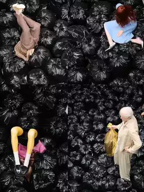 · Architecture of chaos: 4 floors of surreal installations — from crumbling walls to flying objects