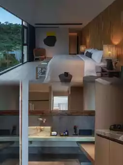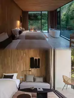 The rooms blend minimalist wabi-sabi aesthetics, with exquisite details everywhere. Equipped with Parma water toiletries, Dyson hairdryers, and even Marshall speakers, it feels like staying in the designer's own home. My favorite is the extra-large floor-to-ceiling window—sunbathing by day and stargazing by night.