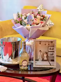 The hotel's exclusive "Anniversary Celebration" offers a series of surprises, unfolding with warmth and delight! Push open the suite door, and you'll find a framed photo capturing your sweet moments, a fragrant bouquet, a delicate sparkling wine, and a heartwarming handwritten card waiting for you. The starlight in her eyes has already been quietly ignited by this thoughtful gesture.