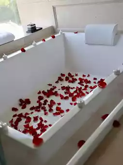 Walking into the guest room is even more healing! Soak in the bathtub sprinkled with petals 🛁, raise your eyes to enjoy the garden view outside the window, with VOD viewing experience and exclusive snack gift basket 🎬, the whole person is gently wrapped, completely remove all fatigue, this is the ultimate relaxing appearance of the weekend ~
