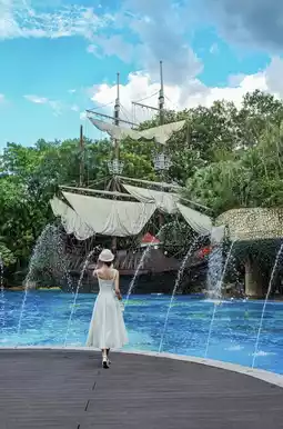 🏖️The outdoor area feels like a trip to Bali! The 2,000㎡ sandy pool🏊♀️ is covered with fine Sanya sand, and the replica of the "Santa Maria" sailboat⛵️ is perfect for photos! After a day of fun, unwind with a spa treatment, or hit the 24-hour gym overlooking lush greenery. This place truly understands the romantic escape every girl dreams of💕.