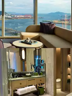 • Panoramic floor-to-ceiling windows frame the Qianhai skyline like a dynamic mural. We recommend choosing a sea view room on the 46th floor or above to witness the Ferris wheel spinning through the sea of clouds