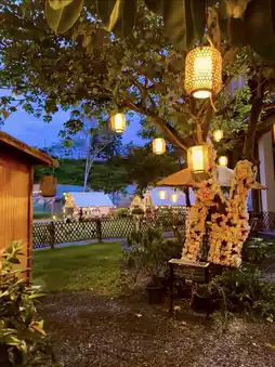 Bamboo tables and chairs + lanterns 🏮 create perfect photo moments in minutes