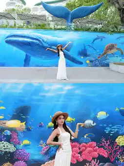 4️⃣ Whale Fall Photo Wall: At the Nayuki bridge heading towards the beach, blue and white colors are super soothing