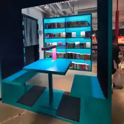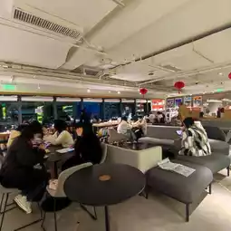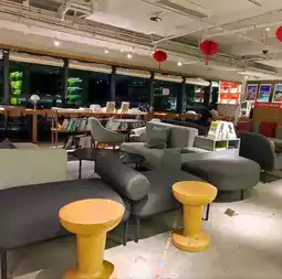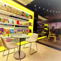This Gaga Shop is open 24 Hours. Nice place, clean and has a very welcoming atmosphere. The shop is huge and decorated nicely. Between the book shelves are tables and chairs. There are big sofas for comfy quiet moments. The ambiance is very peaceful and cozy. There are available books to read or you can buy. They only serve cold drinks. No snacks or sweets. The staff are nice.