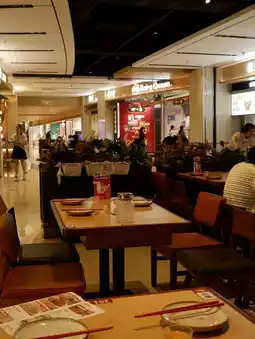 🏠Environment: There is an outdoor shopping mall open seating, right in front of the automatic elevator, and an open kitchen indoors, where guests can watch the chef prepare food through the glass window. The overall theme is light gold and red, the seating arrangement is spacious and comfortable, the lighting is bright, and it is clean and high-end.