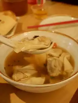 The soup tasted more like seaweed than chicken, light and not greasy, the small wontons were bite-sized and tasted normal.
